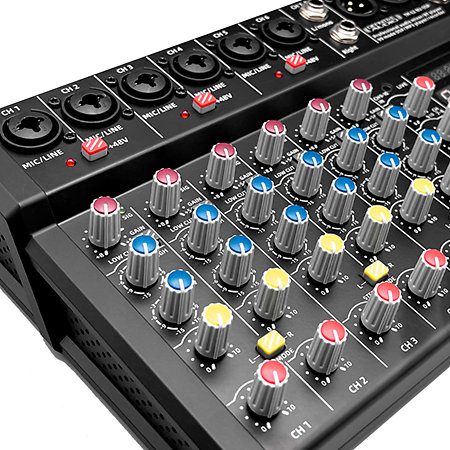 Chaque canal bénéficie d’un égaliseur 2 bandes, permettant d’ajuster rapidement les basses et les aigus pour obtenir un mix équilibré.