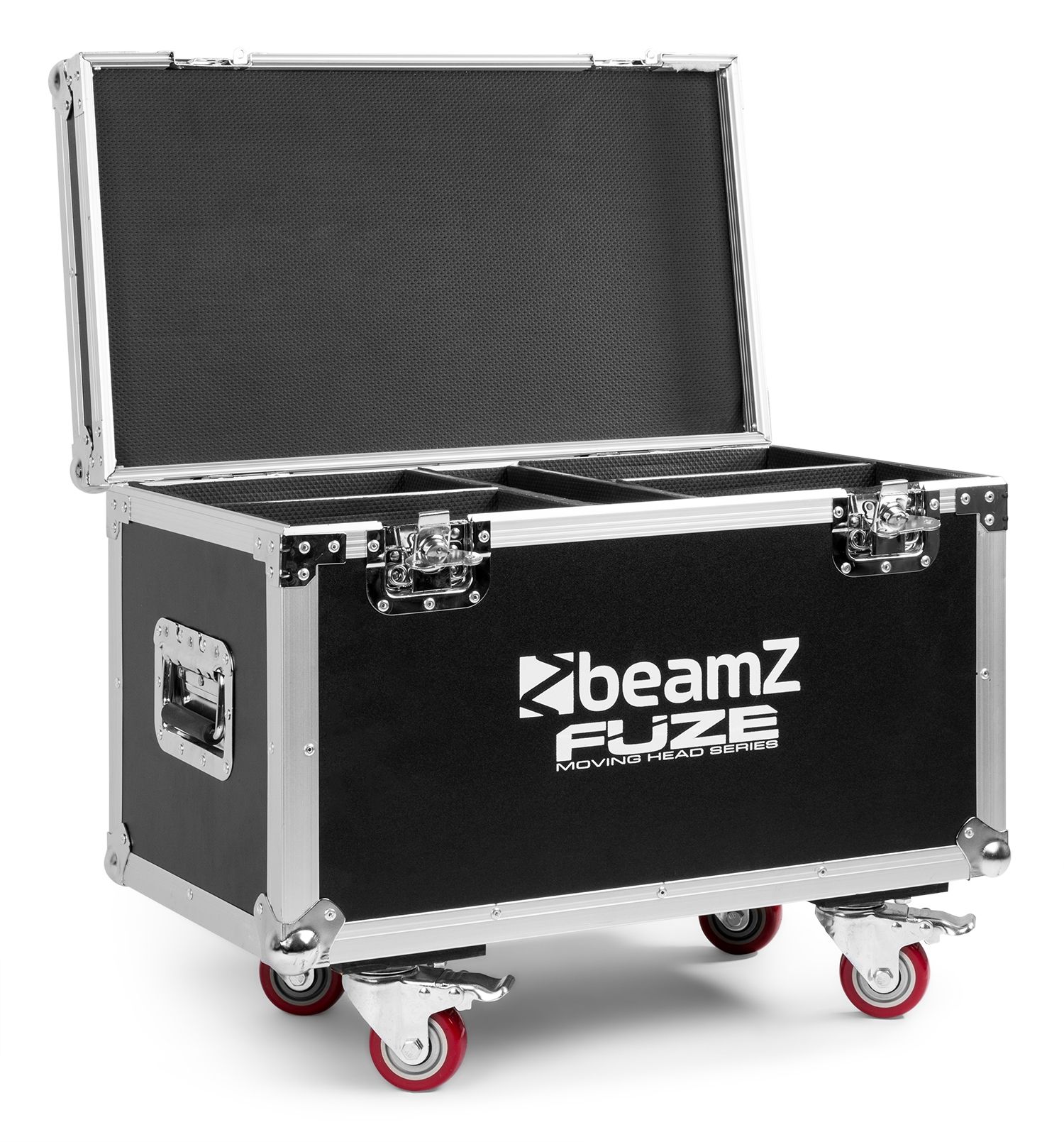 Le flight case lyres Fuze dispose de quatre compartiments séparés spécialement conçus pour accueillir les projecteurs. L’intérieur est équipé d’une mousse de protection sur mesure, qui maintient les appareils parfaitement en place pendant le transport.